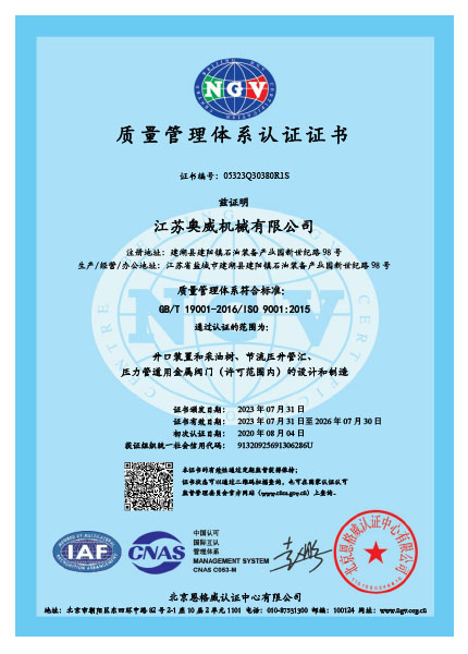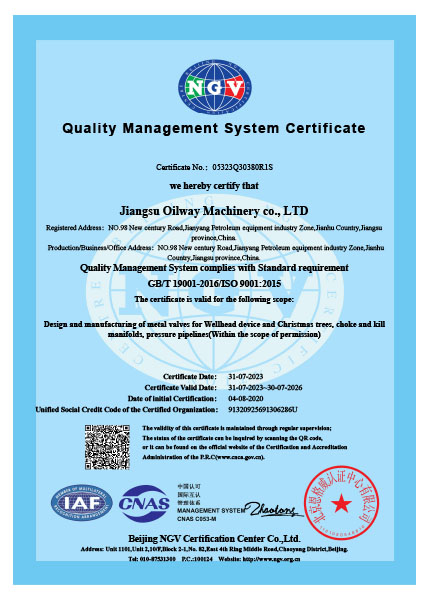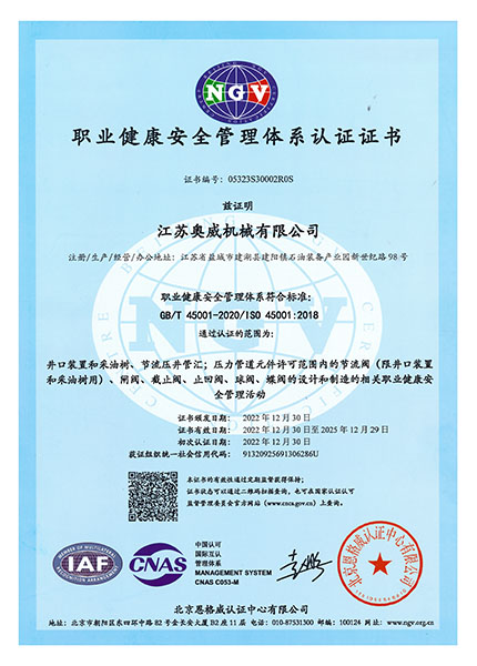 我們一直秉著質量可靠、用戶至上的理念為客戶提供服務,公司先后取得API6A,API6D,API16A,API16C,CE,TRCU (EAC),API6FA,ISO9001,ISO14001,ISO45001等國際認證,使我們能更加規(guī)范化的按照標準及客戶要求,提供優(yōu)質產(chǎn)品。